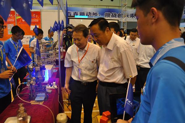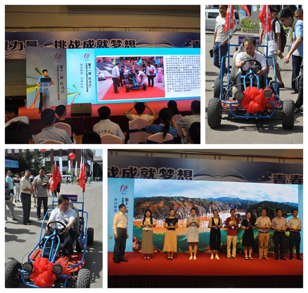 学校副校长黄义仿、学生处、团委、各院系负责人及学生代表40余人参加了开幕式。终审展示期间,我校以实物、模型等方式展出了《以我国西北地区为主的原油评价软件系统开发》、《多功能全地形新型地膜覆盖播种一体机》、《“吉华一号”农业害虫智能驱捕器》、《聚苯胺/凹凸棒纳米复合材料对染料废水的吸附性》、《“互联网+”时代下,创建电商精准扶贫新模式》等作品,选手们在现场对自己作品的研究内容,作品的科学性、先进性、现实意义等向现场观众作了讲解介绍。其中部分作品还顺利通过了专家质询等环节。专家们结合实际应用价值和可行性对作品进行考核,并提出了改进的意见和建议。我校“中德1号”卡丁车由首届中国汽车诊断师大赛冠军孙怀君老师担任技术总指导,带领中德诺浩班6名优秀学员自主设计开发,整车纯手工打造而成,除发动机和轮胎等采购总成件、座椅取材于报废车辆之外,其余部件均属手工自制,工厂件占比极小,整车轻便紧凑,操控简单稳定,安全性高,通过性好,可适应各种复杂路况。副省长、省政协副主席郝远热情观看并聆听了作品介绍,各位评委、专家兴致高昂地试驾了卡丁车,引得众多师生驻足观看。