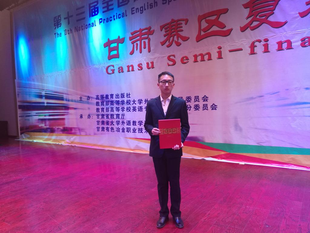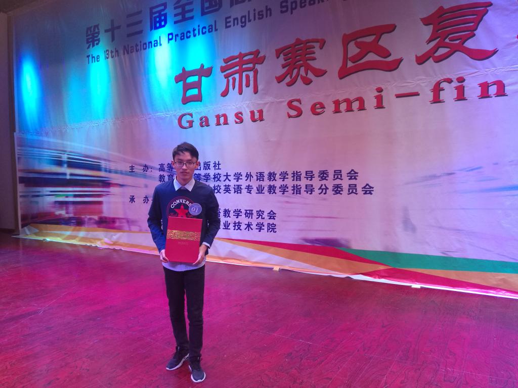 我校选手蔡鹏程同学(国际教育学院)、马伟同学(石油化学工程学院)在大赛中,奋力拼搏,勇克其它实力选手,分别获得专业组特等奖(第一名)、非专业组一等奖(第二名)。蔡鹏程同学将代表甘肃省参加全国职业技能大赛英语口语总决赛。