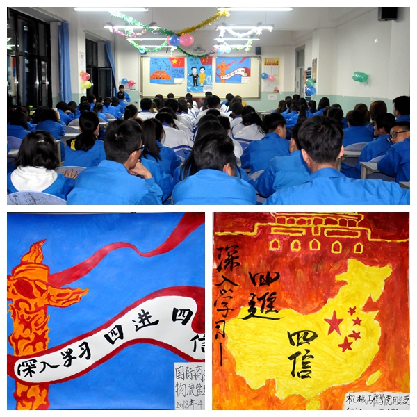 活动伊始,各班组织讲解了“四进四信”的精神内涵,即以“进支部、进社团、进网络、进团课”的“四进”为手段,引导帮助广大青年学生进一步牢固树立对党的科学理论的信仰,努力争做“可爱、可信、可贵、可为的“四可”青年。随后,各班代表通过精心制作的PPT,分享自己的学习成果,带领班级同学们深入学习“四进四信”的总体思路和重要意义。同学们认真做好笔记,并就活动主题展开讨论。同学们纷纷表示,学习“四进四信”精神不能只停留在口头上,应该融入在自身的具体实践中,还表示要积极的向身边的同学传播正能量,以更加蓬勃向上的活力和有所作为的心态投入到学习“四进四信”精神活动中去,极大的激发当代大学生的社会责任感和爱国情怀。