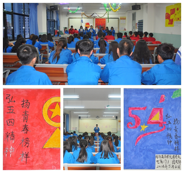 五月的春风情深意暖,五月的花海洋溢飘香,为纪念五四运动99周年,继承和发扬五四精神。进一步激发青年学生的责任感、紧迫感和使命感,号召团员青年学习五四精神,让青少年奋发向上、积极进取。近日,校团委组织开展了“弘五四精神 扬青春榜样”主题团日活动,各二级分院团总支积极组织,团支部精心策划、准备,用各种方式丰富了本次团活动的形式和内涵。