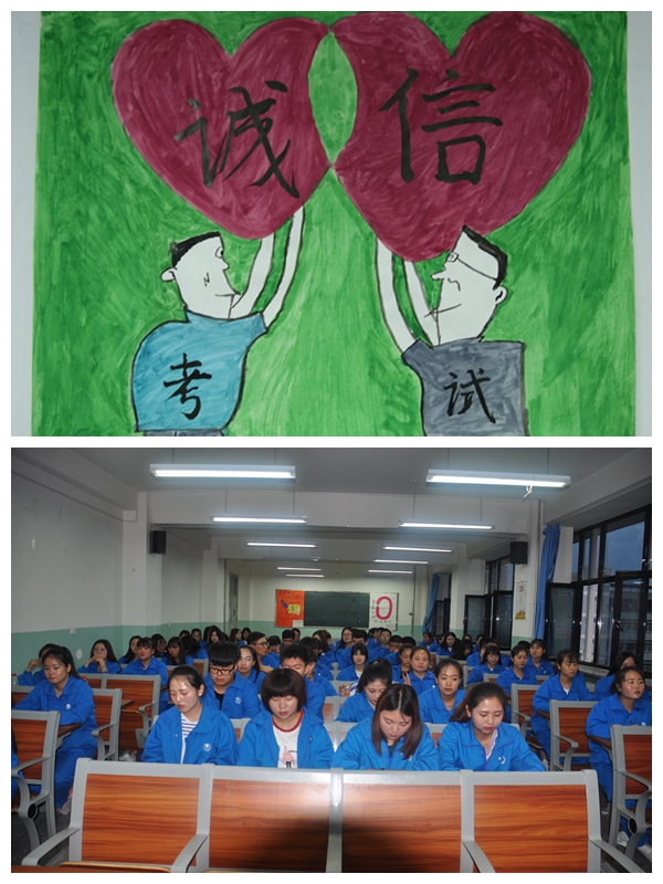 活动中各二级学院团总支采取了一系列措施,开展了多项活动。制作悬挂了“严肃考风考纪,树立优良学风”“诚信考试,诚实做人”海报,各二级学院团总支的诚信考试倡议书,张贴于各二级学院学生公寓楼,营造了诚信考试氛围。二级学院团总支负责人通报了学校诚信考试宣传教育活动方案,并带领学生重温我校考试规则,每个同学都在诚信考试承诺书上郑重地签上了自己的名字,承诺严格遵守校纪校规、诚信考试。有的班级举行了诚信考试辩论赛,现场气氛浓烈,辩手分别从正方、反方深刻阐述了诚信对于当代大学生的重要性,也让同学们更加了解到考试作弊所带来的不良后果,同学们热情参与其中,在激烈辩论的同时也收获到丰富的诚信知识和做人的道理,使我们牢固树立守信光荣、失信可耻的道德观念,自觉自律,互相监督,在全校形成了浓厚的学习诚信氛围。