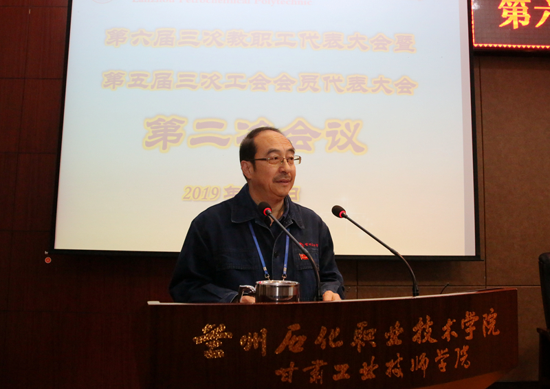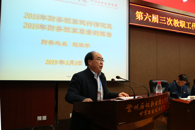计划财务处处长赵振学作了《学校2018年财务预算执行情况及2019年财务预算草案》的报告;校工会工作报告以书面形式提交大会审议。
