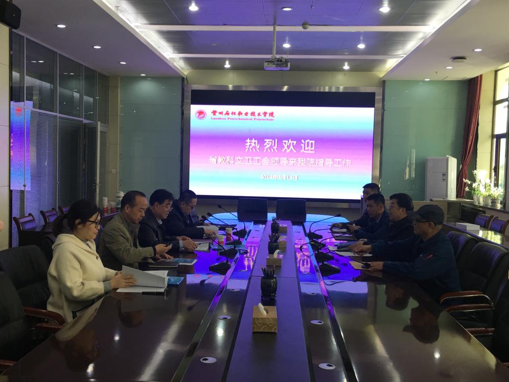 3月12日省教科文卫工会主席刘虎林,一行5人来我校就陇原工匠工作室及贯彻落实《甘肃省学校教职工代表大会规定》情况调研和检查指导工作。
