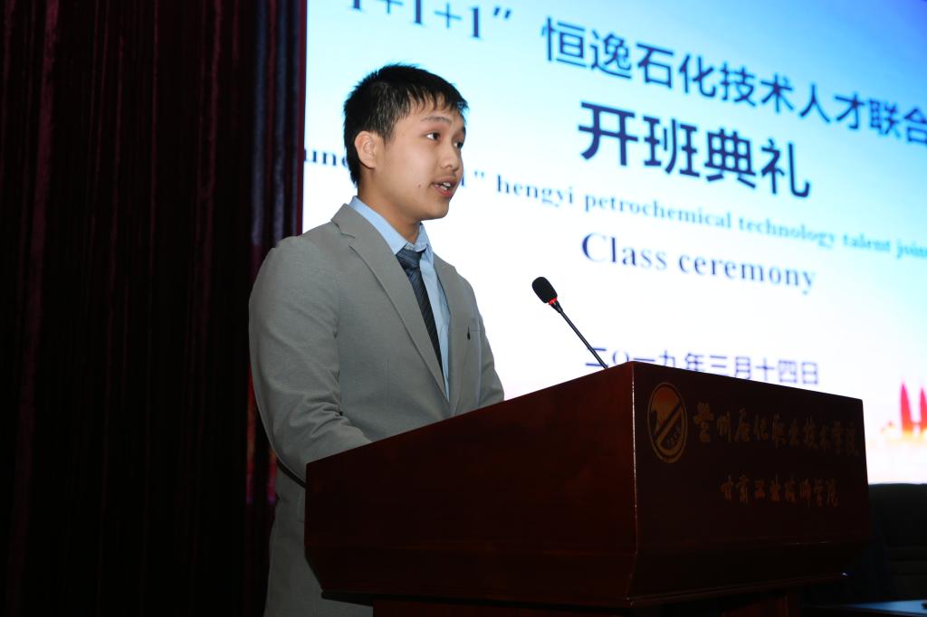 仪式上,罗晓慧详细讲述了公司发展规模、概况及工作性质要求。她说,恒逸文莱PMB石化项目,作为中国与文莱两国的“旗舰合作项目”,目前项目总体进度完成愈90%,预计今年二季度有望按计划进入试车阶段。当整个项目完成后,将为当地创造4000个左右直接就业岗位,上万个间接就业岗位。希望来的首批31位同学,作为未来的恒逸文莱石化企业员工,遵守中国法律和学校的管理制度,认真学习,尽快掌握专业技术知识与技能,做合格的石化员工,同时为后期来学习的学员树立榜样。