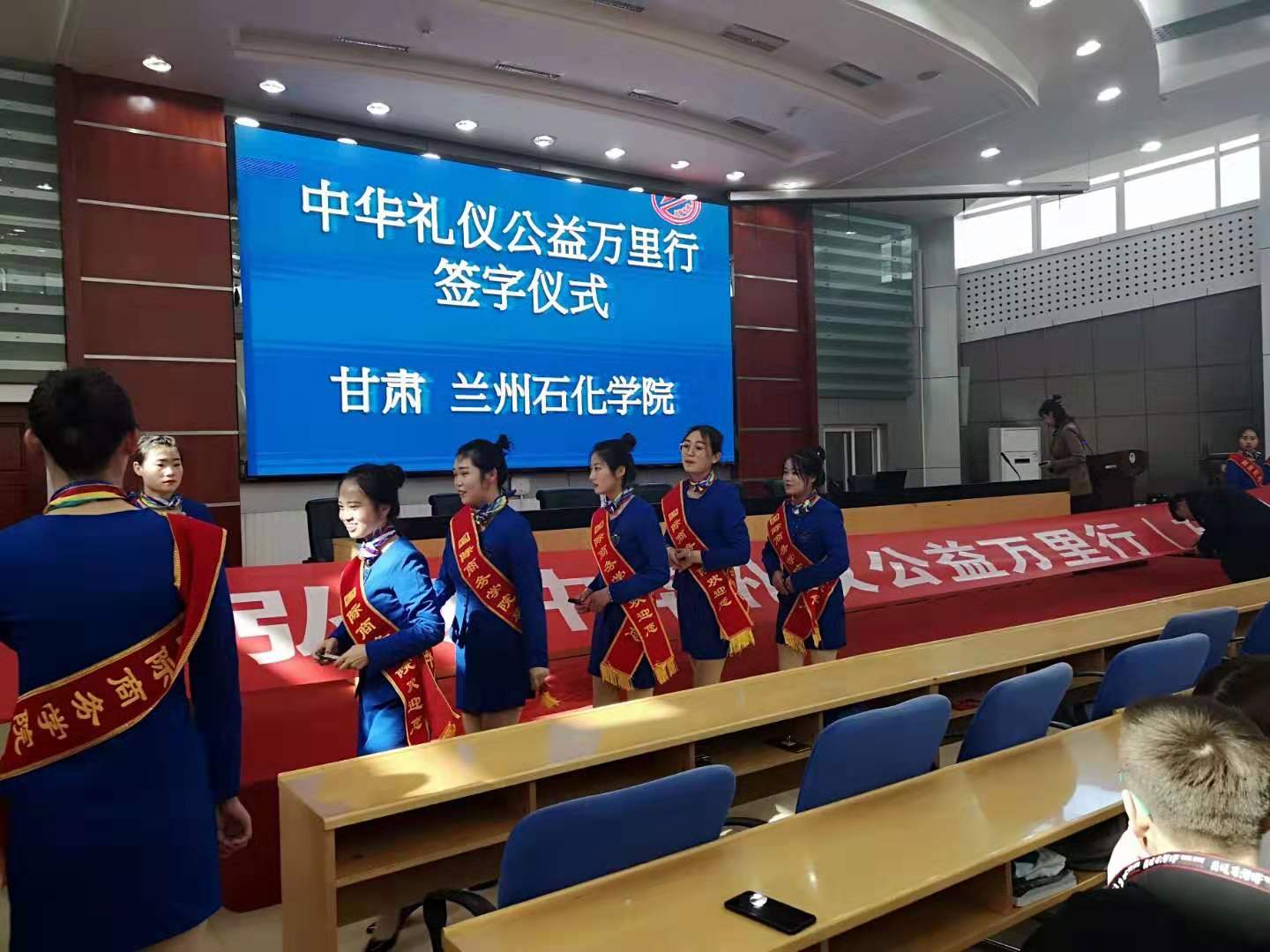 弘扬中华礼仪公益万里行甘肃·兰州石化职业学院站开启在多功能报告厅举行,相关部门、学院的230名参加弘扬中华礼仪公益万里行宣誓仪式,庄重的宣誓后大家纷纷在宣传横幅上签名。