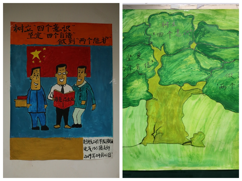 活动中,通过PPT讲解、诗朗诵、演讲、课件展示、视频放映、讲述人物事迹等形式向同学们诠释了“四个意识”、“四个自信”两个维护”的深刻内涵。各团支部通过观看学习使同学们认识到了对待学习要迎难而上、锐意进取、精益求精、扎实学懂再学精。