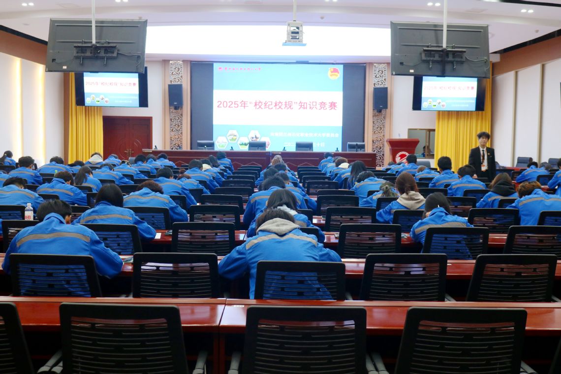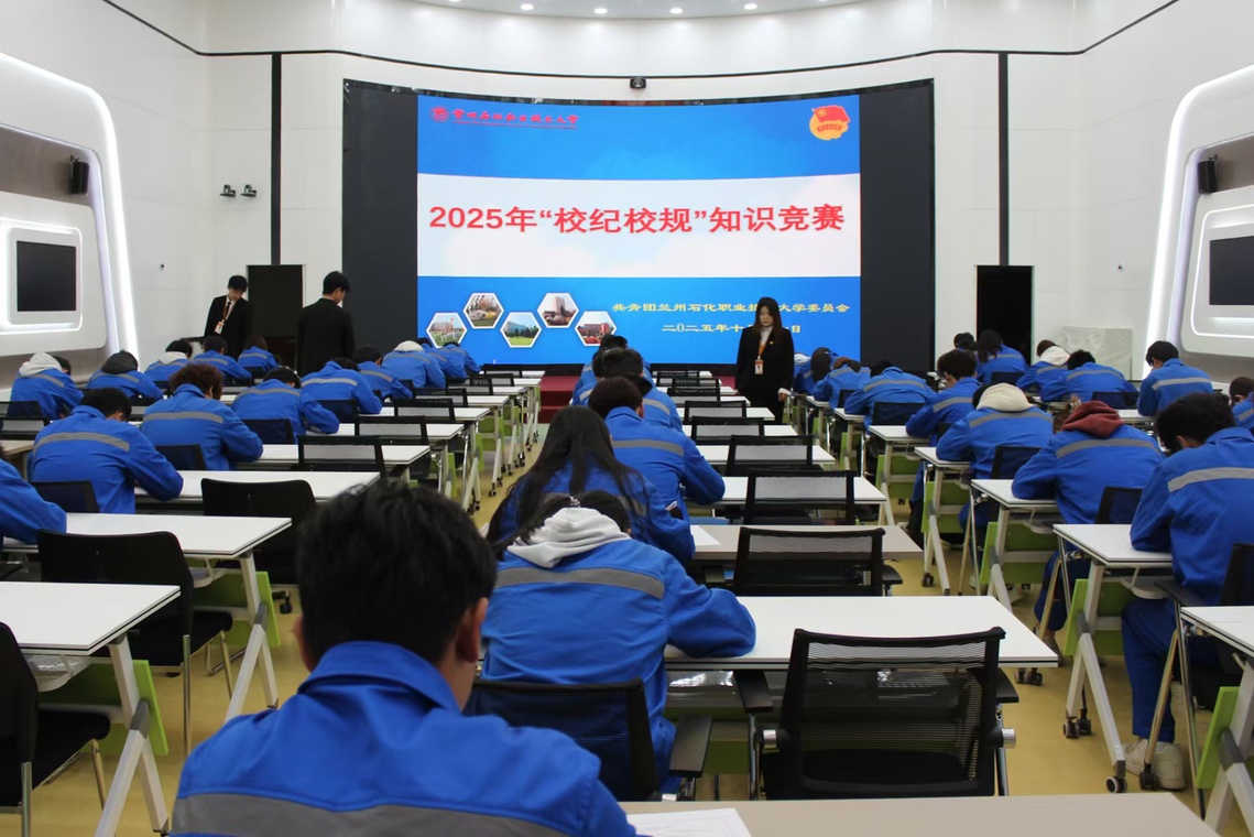2025年校纪校规知识竞赛作为学校“一学五查双促进”素质提升月系列活动之一,自10月份启动以来,各学院积极组织全体学生认真学习了《普通高等学校学生行为准则》《兰州石化职业技术大学学生工作手册》《兰州石化职业技术大学违纪学生处分条例》等相关规定。经过初赛、复赛层层选拔,共有500名选手参加决赛。决赛形式为闭卷考试,时长为100分钟,通过选择、填空、简答、论述等题型,涵盖“校史、校情、校规、校纪”等方面知识。如“社会主义核心价值观”24字箴言、校训、校纪校规、校园安全、消防安全、财产安全和时事热点等相关知识。